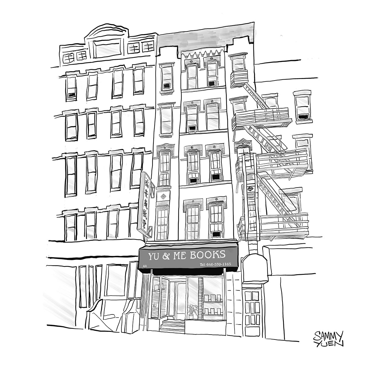 Yu & Me Books features a cozy reading area and offers refreshments like beer, wine, and coffee to enjoy while browsing. They regularly host New York Times bestselling authors, many of whom are Asian American, for book readings and signings that draw long lines and extensive media attention. This local bookstore has become a welcoming oasis of books, prints, and community in Chinatown.